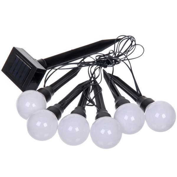 Гирлянда для улицы "Светящийся шар" 3.5 м 6 ламп LED (d=5 см) чёрн.пров, 1 реж.,IP-54, Белый (солнечная батарея)