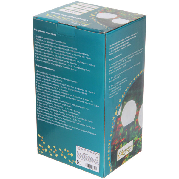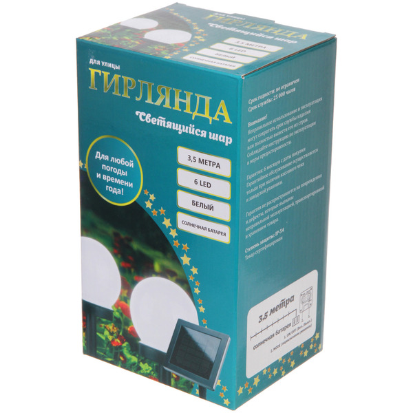 Главная Каталог Дача и сад Садовый декор Декоративное освещение Гирлянда для улицы "Светящийся шар" 3.5 м 6 ламп LED (d=5 см) чёрн.пров, 1 реж.,IP-54, Белый (солнечная батарея)