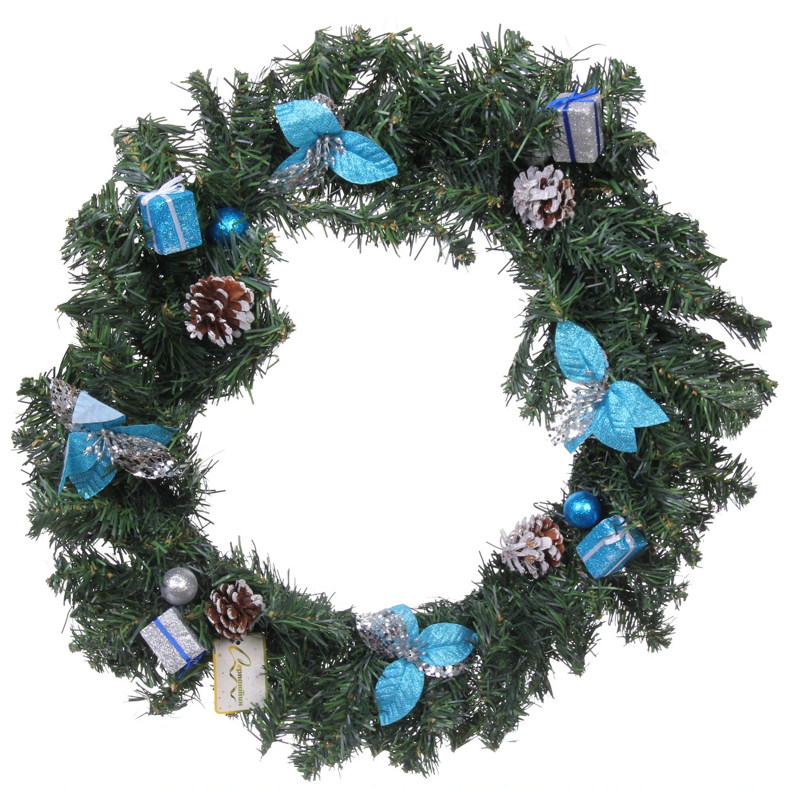 Венок хвойный "Зимние подарки" d-50 см, голубой