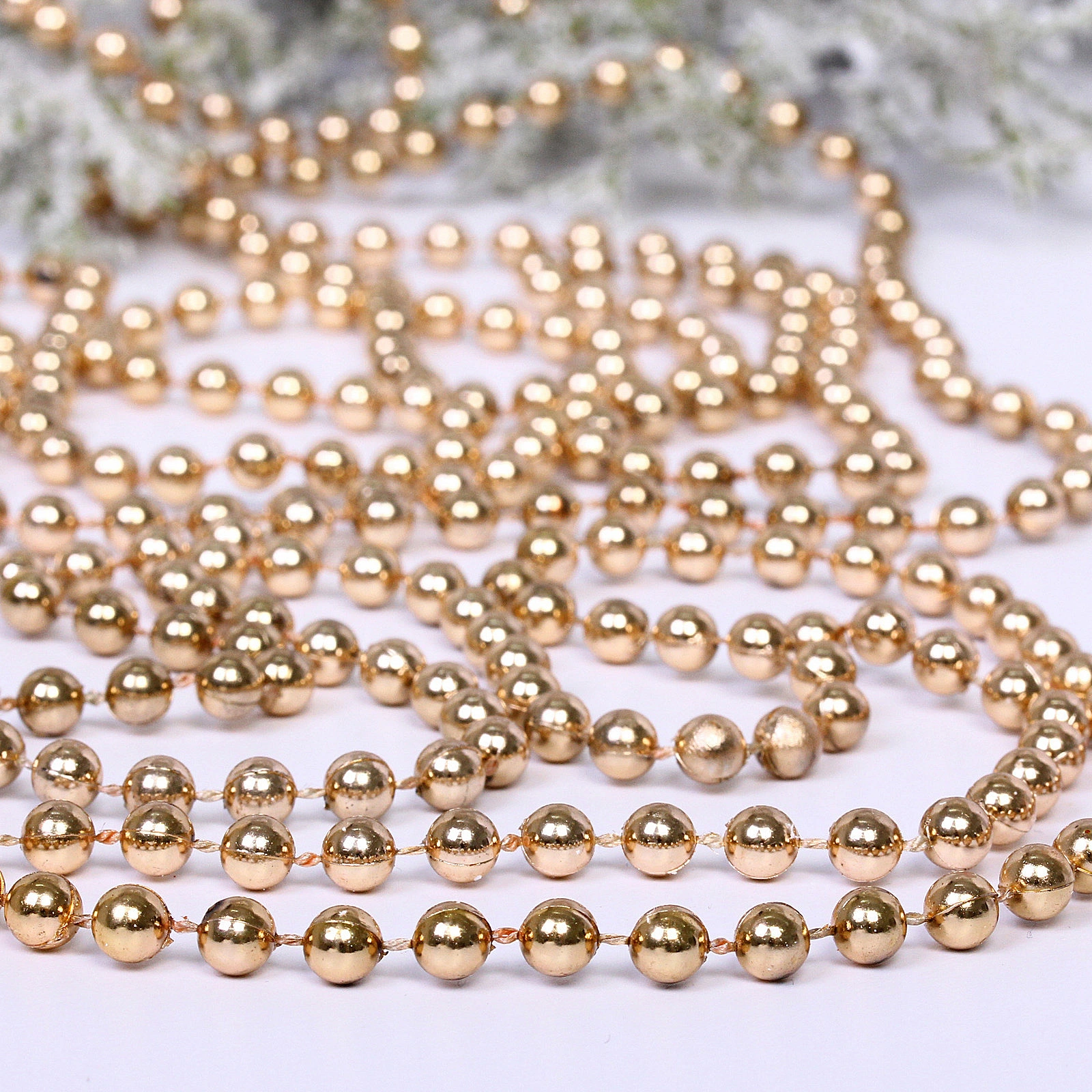 Бусы на елку 2,7м "Шарик" d-6мм, шампань (pvc коробка)