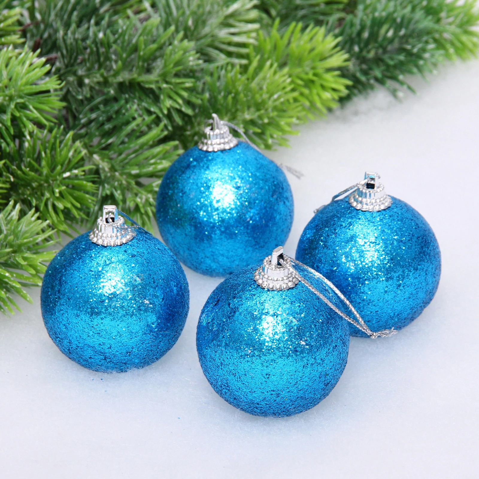 Новогодние шары 5 см (набор 4 шт) "Блестящее напыление", голубой