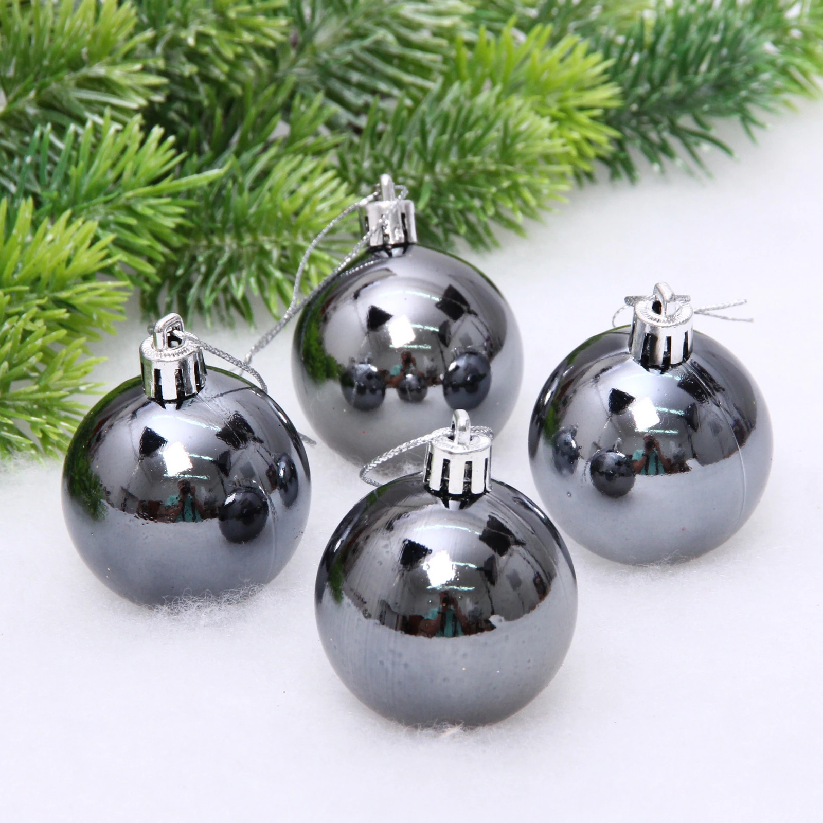 Новогодние шары 5 см (набор 4 шт) "Глянец", графит