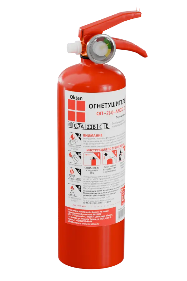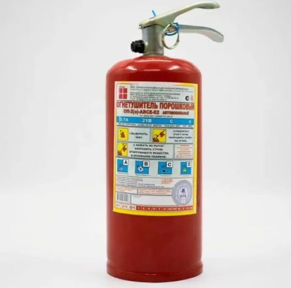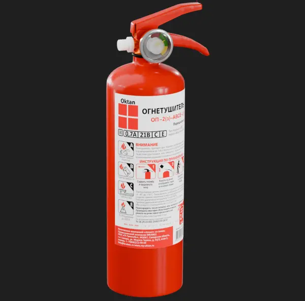 Порошковый огнетушитель с манометром в металлическом корпусе.