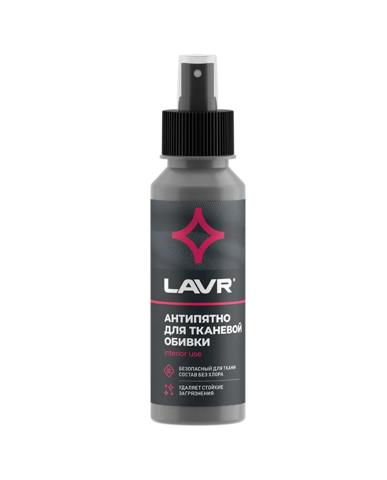 Средство для удаления стойких загрязнений с тканевой обивки автомобиля. Безопасен для ткани, не содержит хлор.